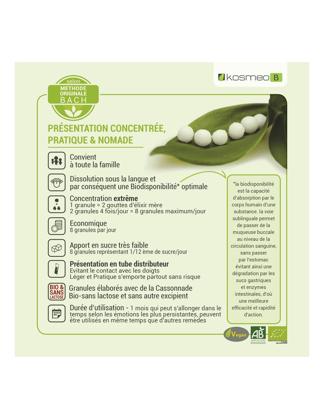 Depuis 1999, Kosméo propose une alternative naturelle, éthique et accessible : les Fleurs de Bach sans alcool sous forme de granules.
